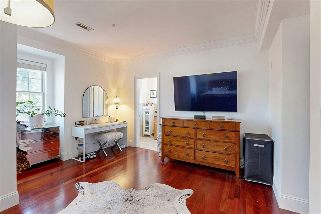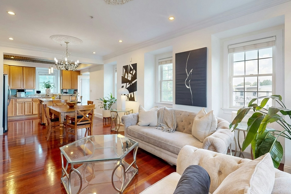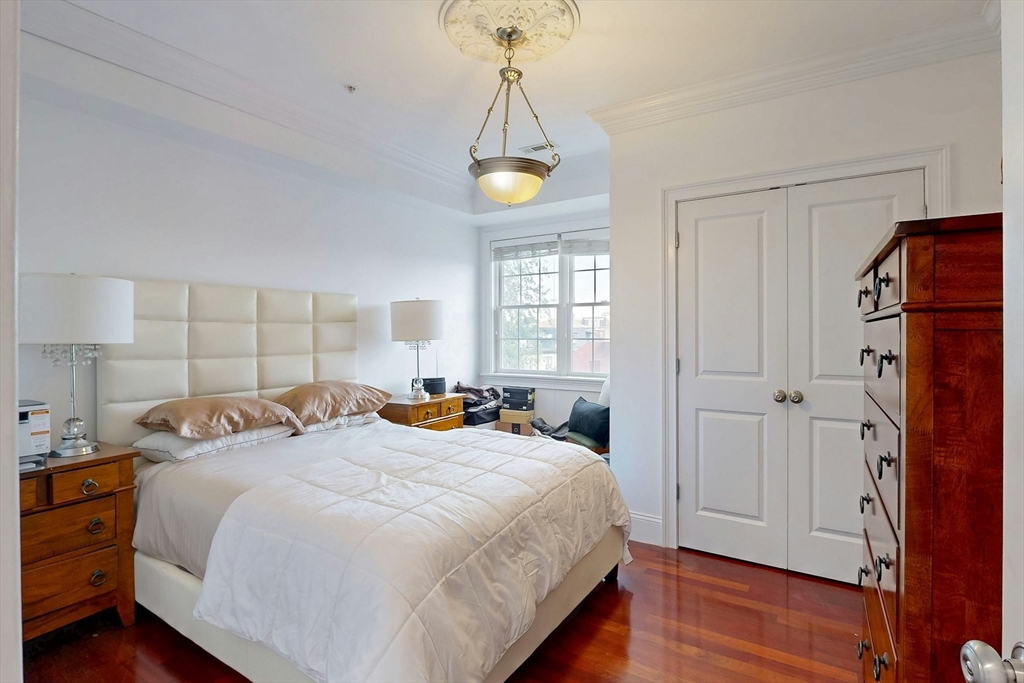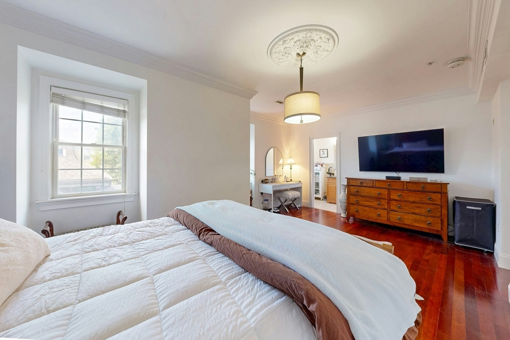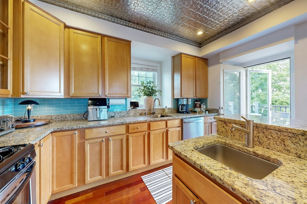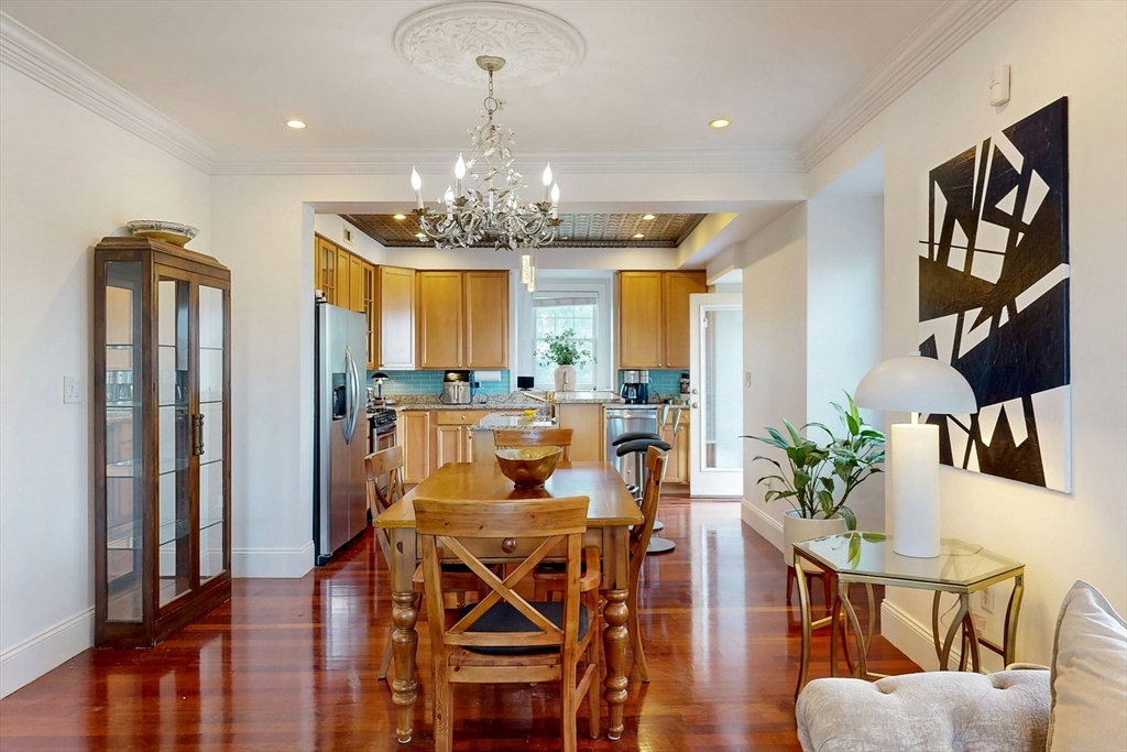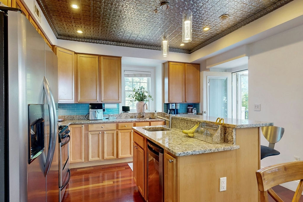 Tucked away on a charming tree-lined street, this sunny top-floor Dorchester condo blends comfort, style, and convenience. The spacious primary bedroom features a tiled en suite bath, while the second bedroom offers generous closet space. Enjoy central air, an open floor plan, and a kitchen with granite counters, a breakfast bar, wine cooler, and plenty of prep space. Choose from two private outdoor spaces - the new back deck off the kitchen or head up to your expansive roof deck with sweeping neighborhood views. Additional perks include a deeded parking spot, professional landscaping, and a large private storage unit in the lower level. All this just minutes from downtown Boston, public transit, I-93, the Harborwalk, and Seaport's restaurant scene.
